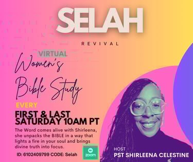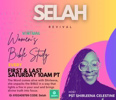 Join us for Virtual Bible Study on Zoom every first and last Saturday at 10am PT. Be refreshed through the SELAH Revival Podcast. Go deeper with the SELAH Revival YouTube Channel.Stay rooted in the Word. Stay strengthened in sisterhood. Stay awakened to your Kingdom purpose.